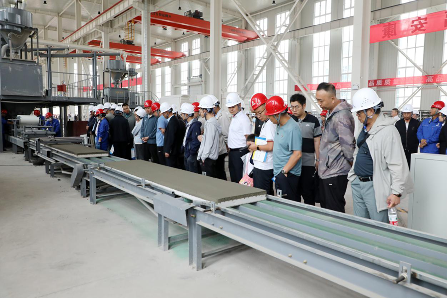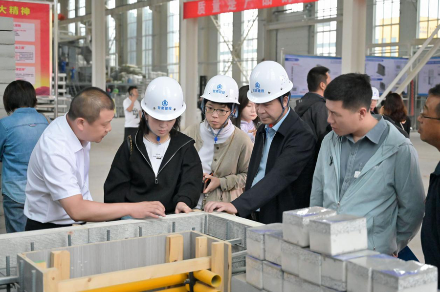 会前,与会人员前往康乐县工业集中区甘肃格赛克蓝川新材料公司进行了现场观摩,甘肃省建设设计咨询集团有限公司副总工程师王跃军结合现场的生产工艺、产品性能及施工工序围绕《JT免拆复合保温模板系统》图集进行了详细讲解。