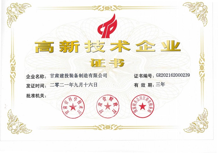 甘肃省高新技术企业证书