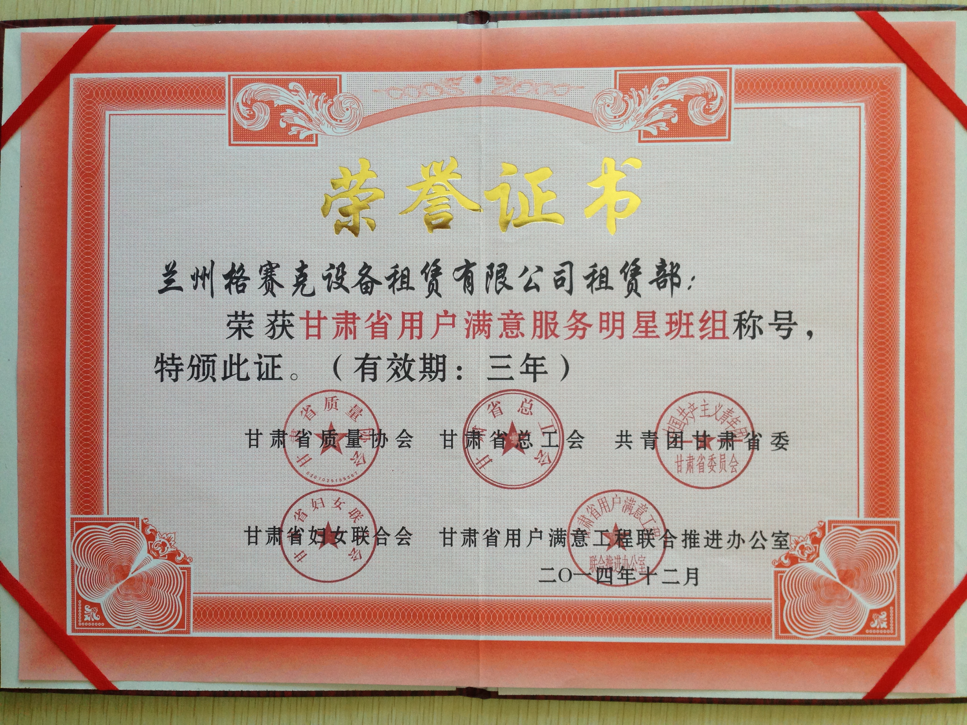 爱游戏体育(中国)官方网站-AYX SPORTS 装备制造公司在2014年度“甘肃省用户满意服务明星”评选活动获评“甘肃省用户满意企业”和旗下子公司兰州格赛克设备租赁公司获评“甘肃省用户满意服务明星班组”。