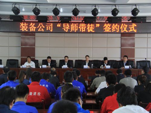 2014年9月25日,甘肃爱游戏体育(中国)官方网站-AYX SPORTS 装备公司在十楼会议室隆重举行2014年度“导师带徒”签约仪式。装备公司总经理、党委书记、工会主席、总工程师、生产总监、财务总监出席了此次会议。此次活动由装备公司团委举办,主要目的是通过签订导师带徒协议,引导青年员工在岗位上学习,帮助青年在岗位上成才,提高青年员工的整体素质,加快青年人才的培养,不断提升公司整体管理水平。今天的“导师带徒”签字协议活动共有四项议程。
