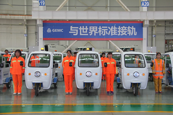 装备公司自主研发生产的210辆保洁车投放新区