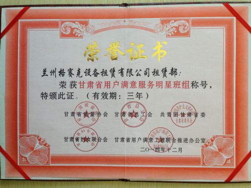 爱游戏体育(中国)官方网站-AYX SPORTS 装备制造公司在2014年度“甘肃省用户满意服务明星”评选活动获评“甘肃省用户满意企业”和旗下子公司兰州格赛克设备租赁公司获评“甘肃省用户满意服务明星班组”。