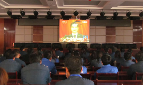 据了解,此次学习会议的组织,是我司日前组织人数最多,学习氛围最浓,效果最佳的首次大型学习会,而且,不同的人都有一种相同心声和共鸣,那就是“坐在我们这个只能容纳几百人的会议室听胡锦涛总书记讲话感觉和坐在人民大会堂十八大开幕式的现场一模一样。”